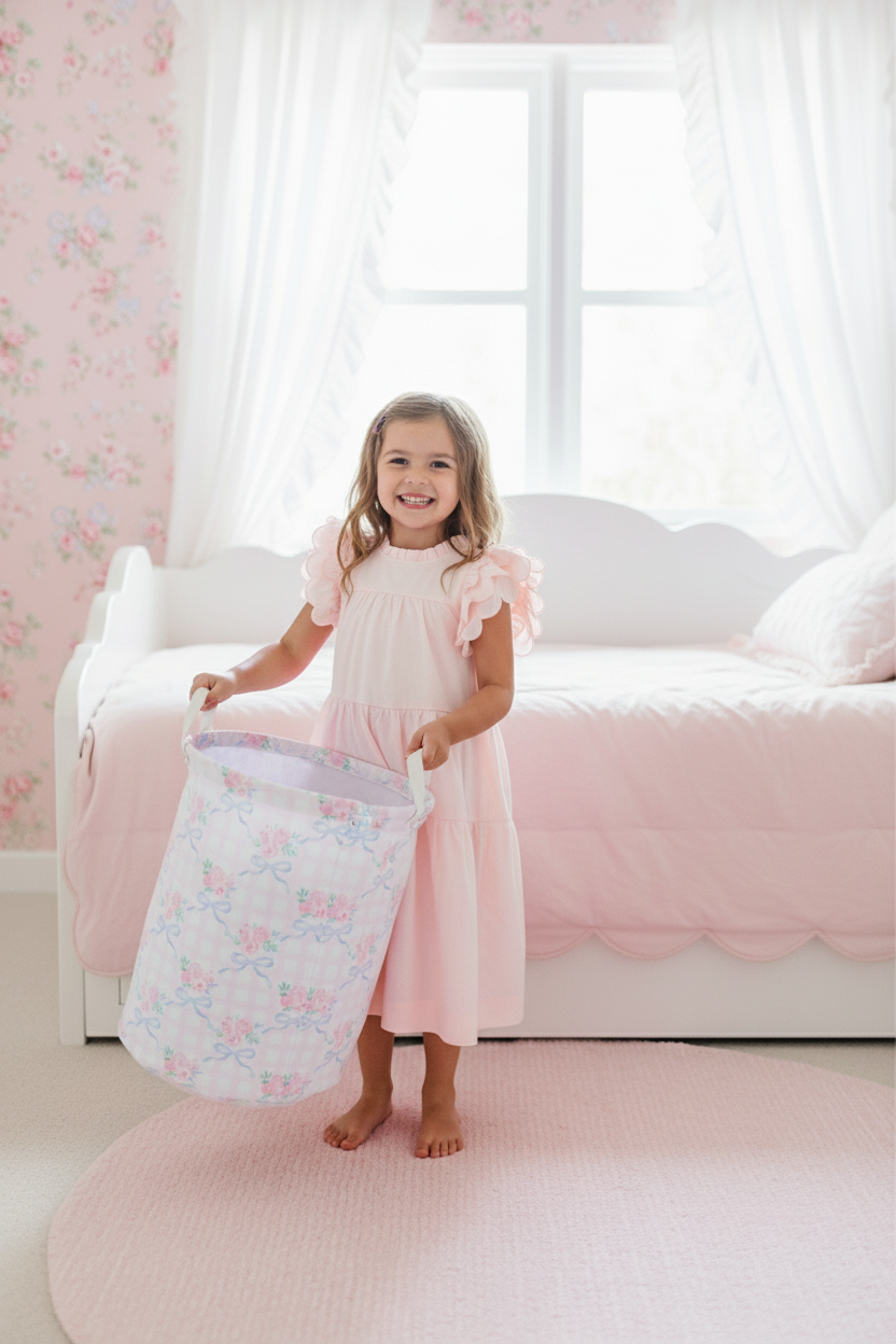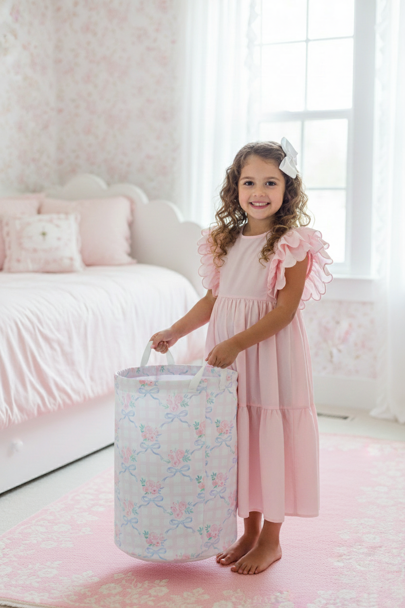 Bring a touch of sweetness and style to your little girl’s room with this charming printed laundry basket—designed to be both a beautiful décor piece and a wonderfully functional hamper. Crafted from sturdy 100% polyester, it features a generous size (13.7" wide × 19.3" tall) that easily holds clothing, blankets, and all the little treasures that come with childhood.