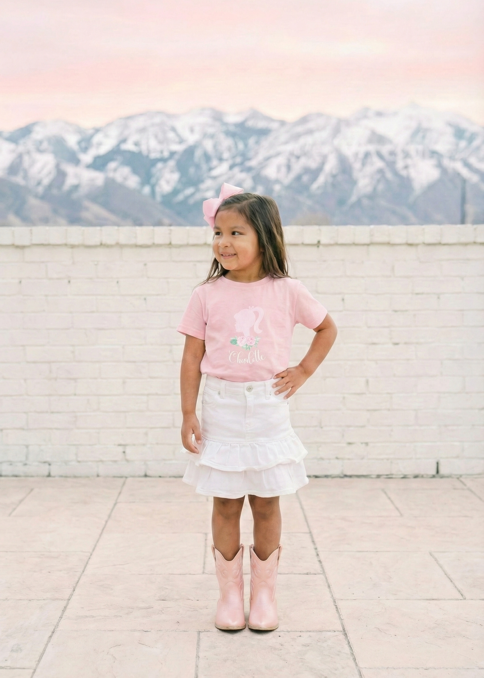 Toddler Tee — Pink Doll Barbi Silhouette with Florals Personalized