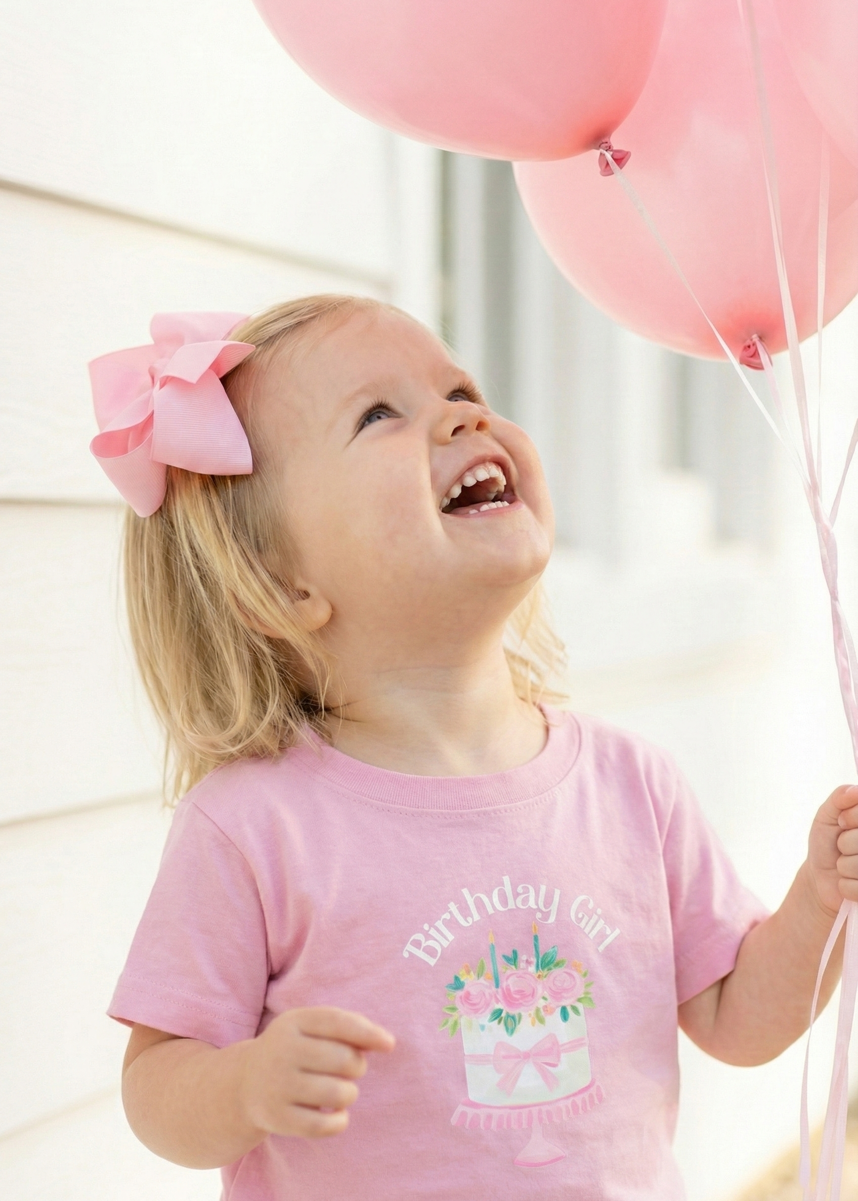 Infant Tee — "Birthday Girl" Pink Floral Cake Baby T‑Shirt