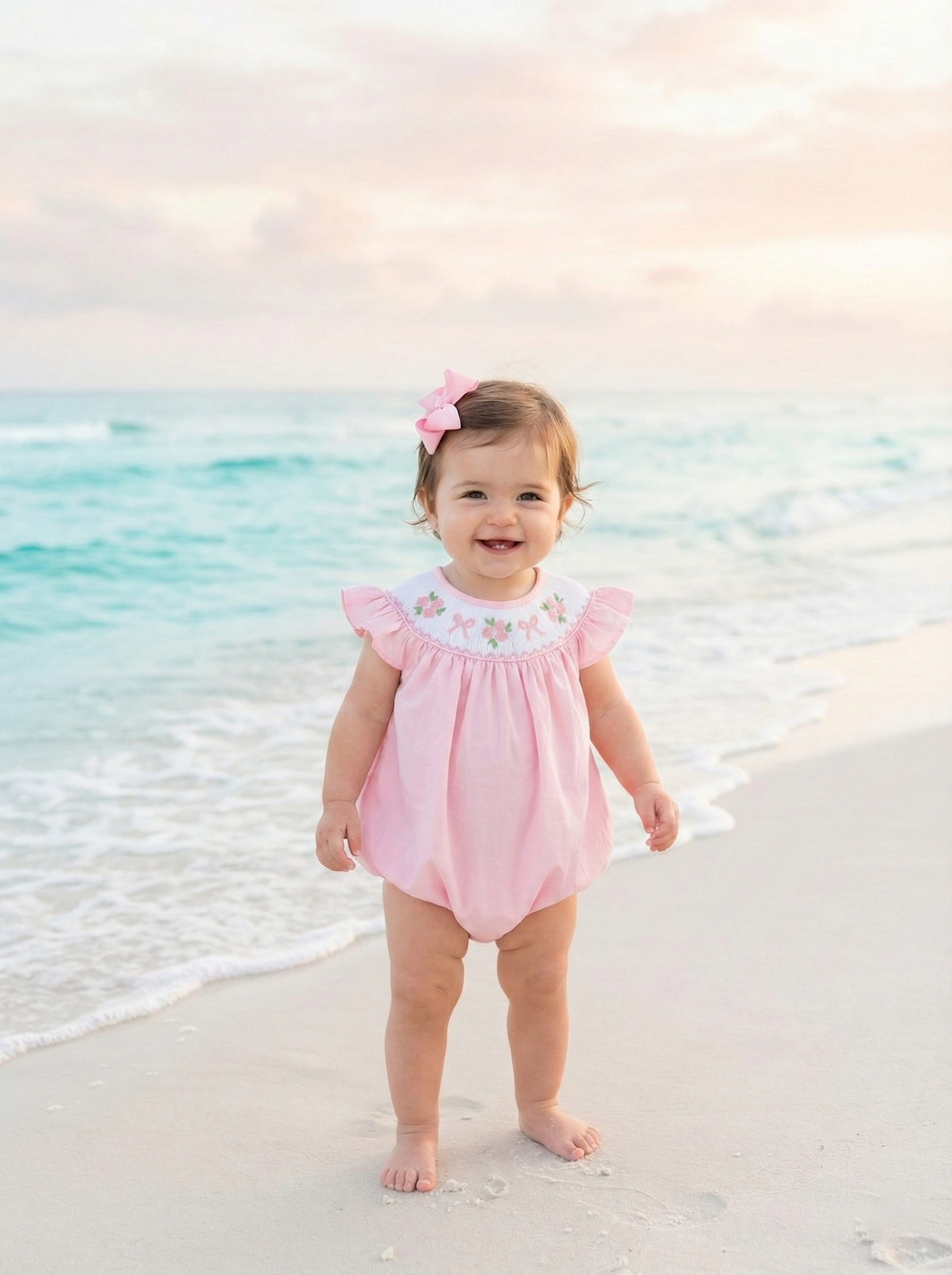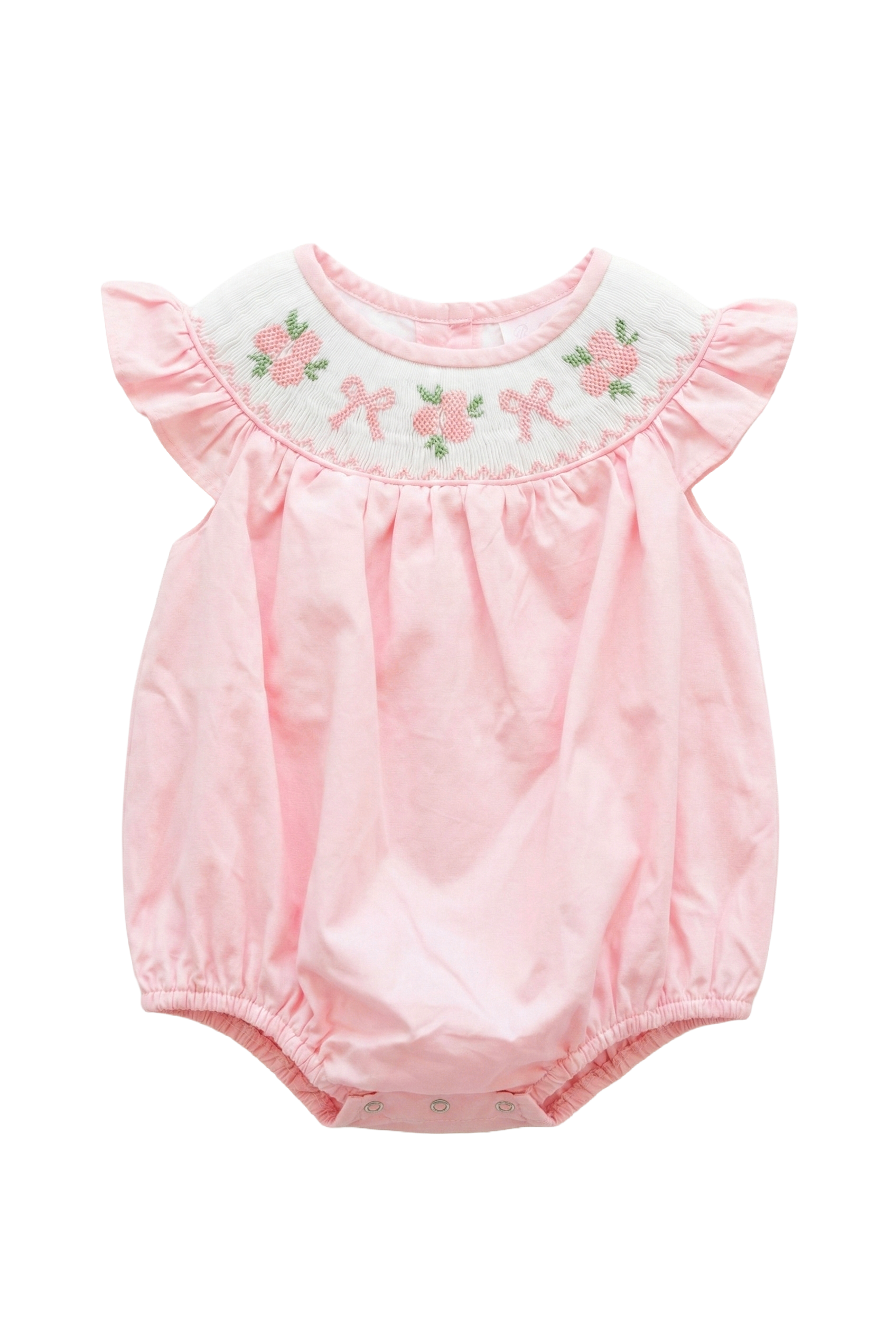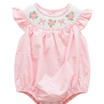 Soft, timeless, and full of Southern charm, the Blush Belle Bows & Flowers Bubble is a true heirloom treasure for your little girl. Crafted from 100% cotton and hand smocked with french knot embroidery, this sweet bubble is designed with the utmost care and attention to detail.
