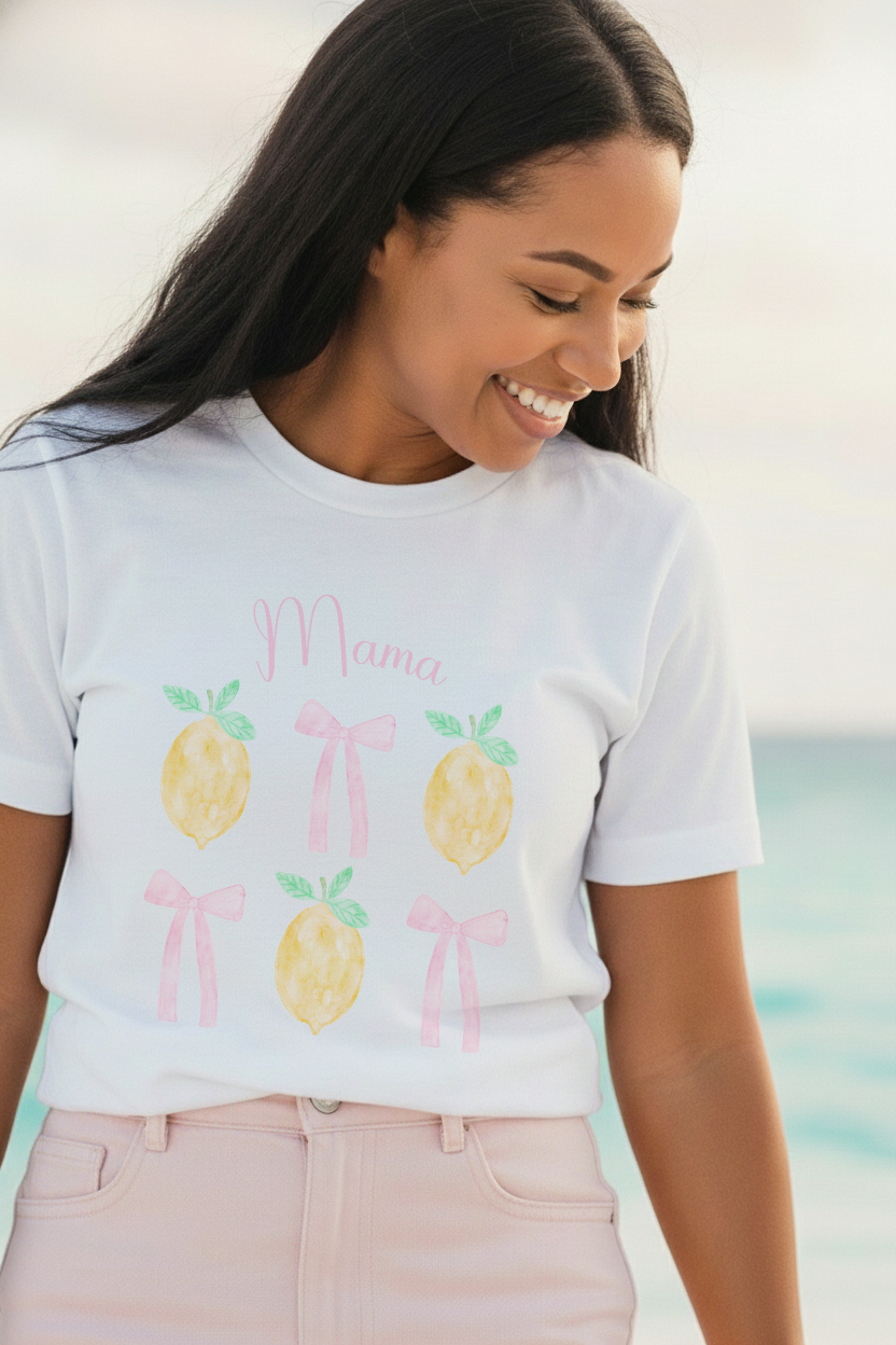 The front design features the playful yet heartwarming phrase “Mama’s Main Squeeze”, styled with a soft, feminine touch that feels equal parts sweet and timeless. Whether paired with denim, a flowy skirt, or worn alongside your little one, it brings a joyful nod to motherhood and the love that fills your days.