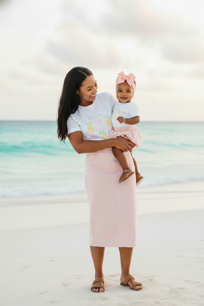 Celebrate life’s sweetest moments together in this charming Mommy & Me matching tee set—soft, airy, and thoughtfully designed to flatter both mama and little one. Perfect for everyday wear, special outings, or capturing those fleeting moments you’ll treasure forever.