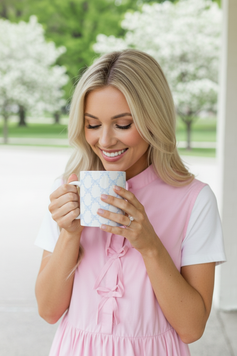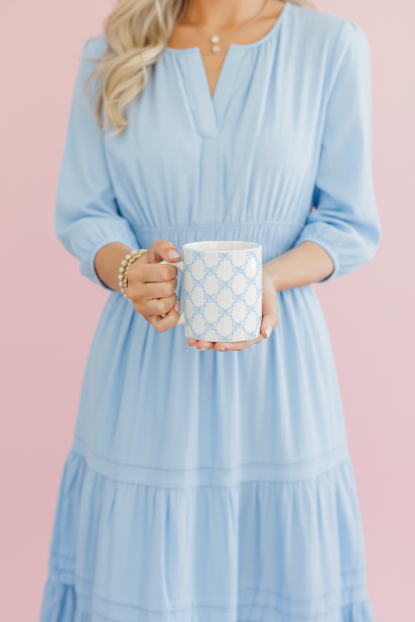 Bring a touch of Southern charm to your daily routine with the Carolina Lattice Mug. Wrapped in a soft powder-blue trellis pattern, this timeless piece adds a gentle elegance to coffee moments, quiet mornings, and cozy evening teas. Its classic silhouette and graceful design make it a lovely addition to any kitchen, desk, or gift basket.