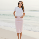 Made from premium Airlume combed and ring-spun cotton, this tee offers that cloud-soft feel you’ll want to live in. Its flattering stretch and smooth silhouette make it a lovely choice for beach days, brunch outings, or simply bringing a little sweetness to your daily routine. Pair it with skirts, denim, or cozy joggers — it’s the kind of piece that makes any outfit feel instantly more delightful.