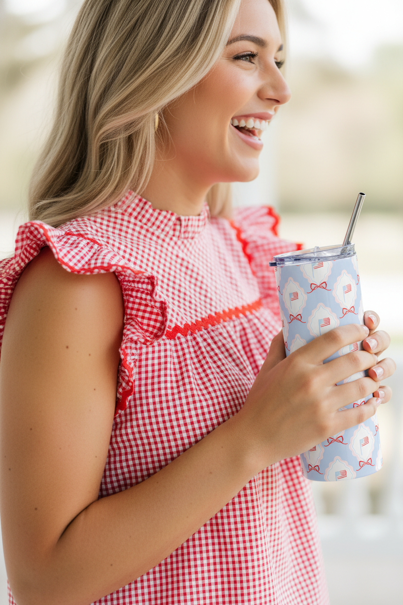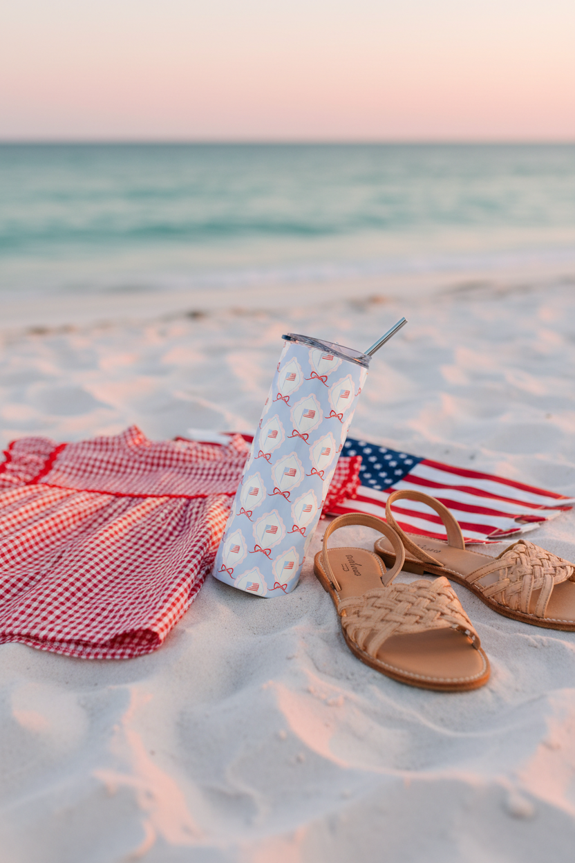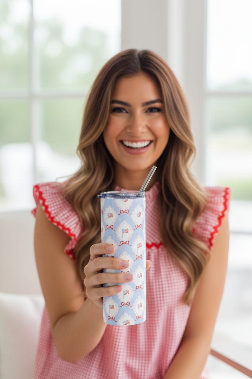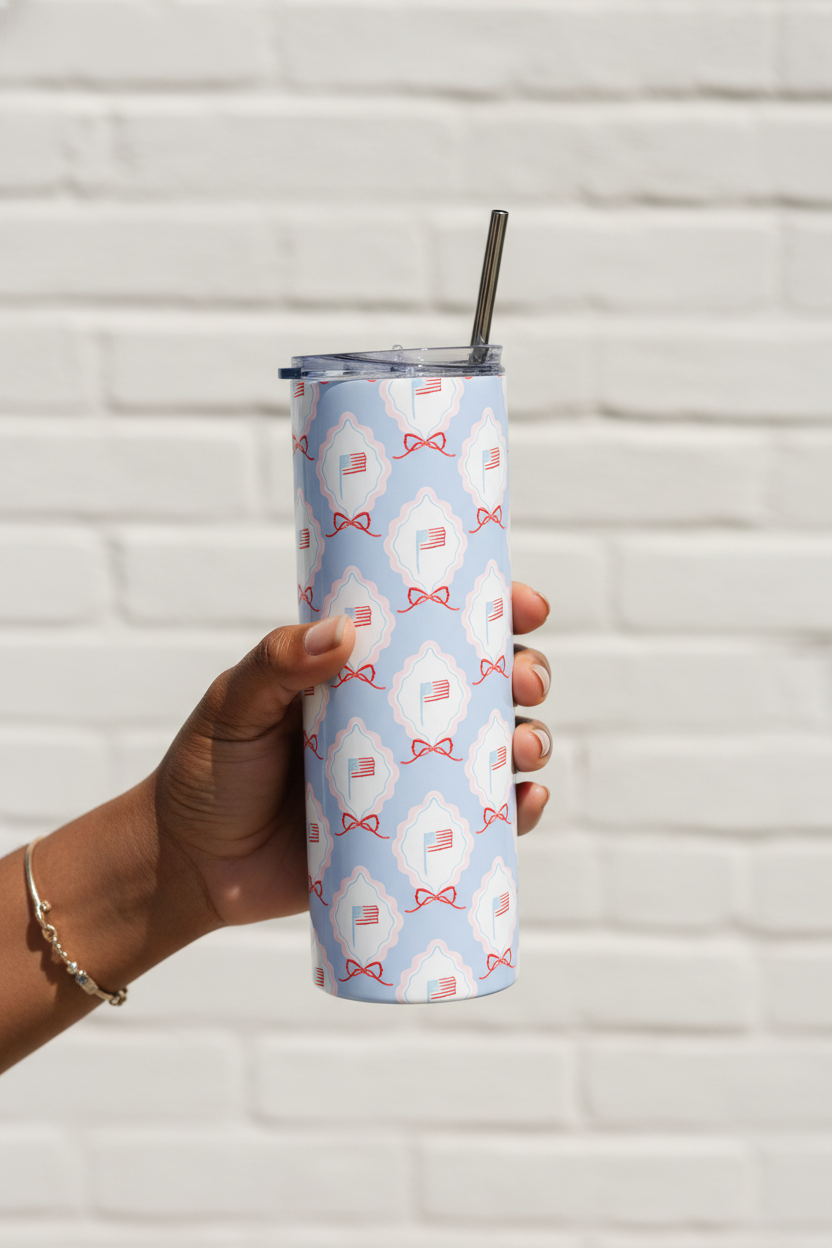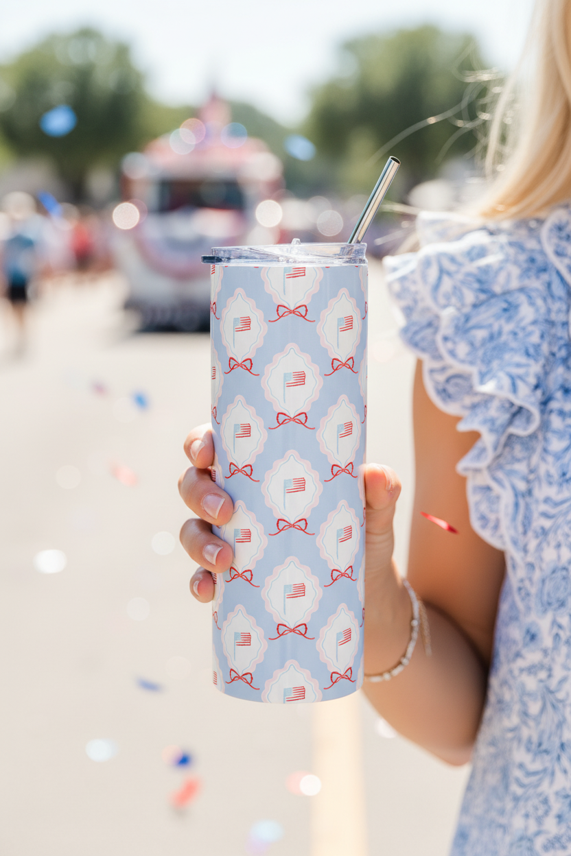 Celebrate in style with this festive 4th of July stainless steel tumbler—your perfect companion for backyard barbecues, firework nights, and every sweet summer moment in between. Its sleek design keeps your drinks icy-cold or wonderfully warm, while the reusable metal straw adds a touch of effortless charm to each sip.