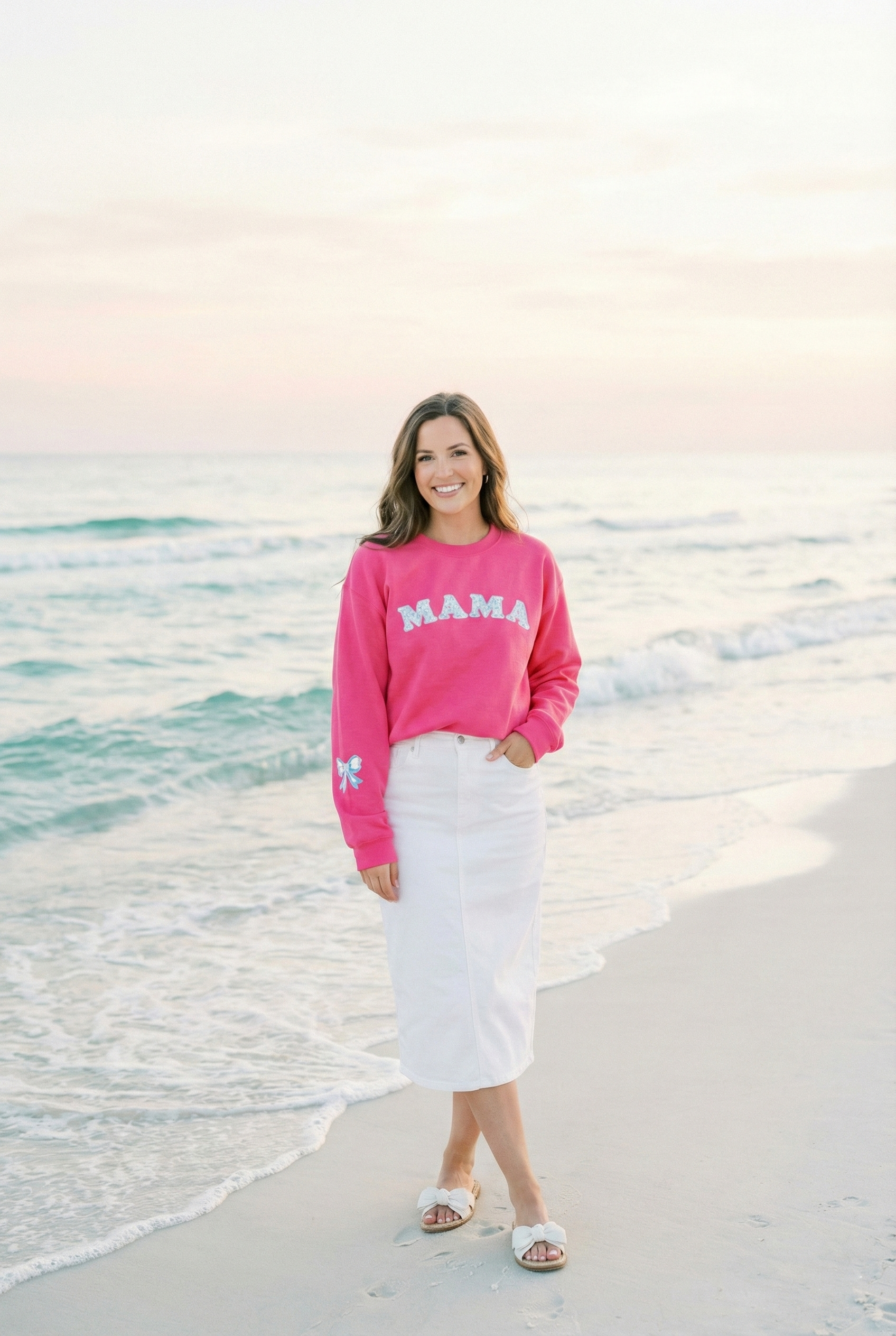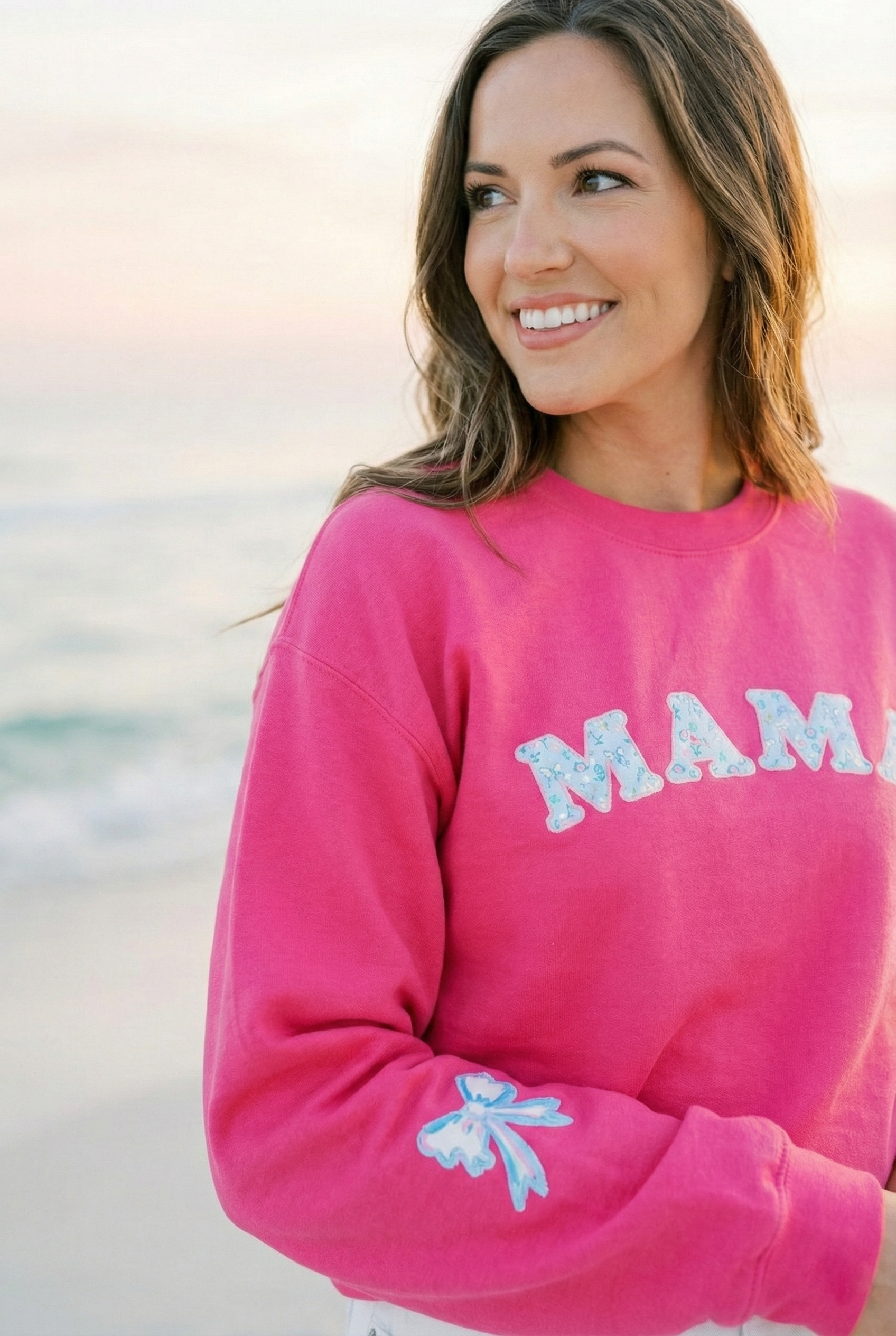 Blossom Mama Crewneck Bow Sleeve Sweatshirt