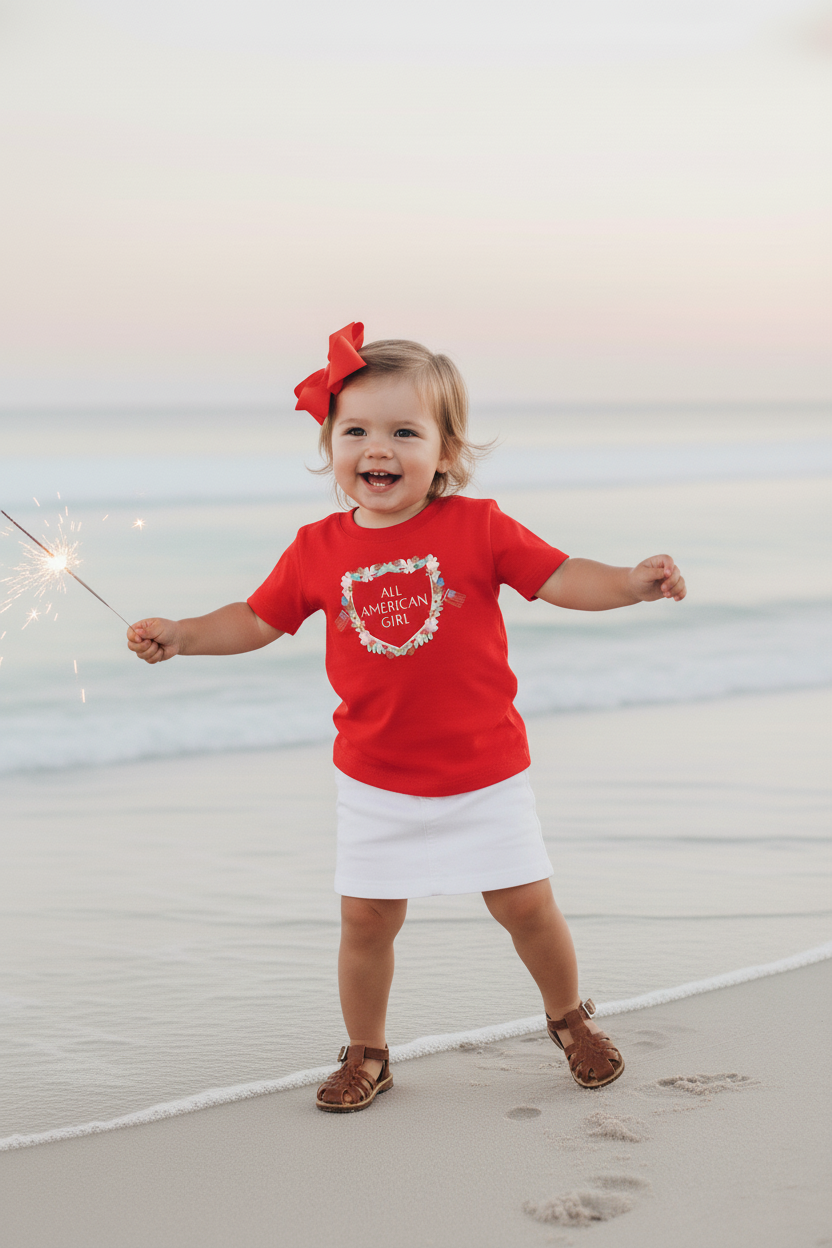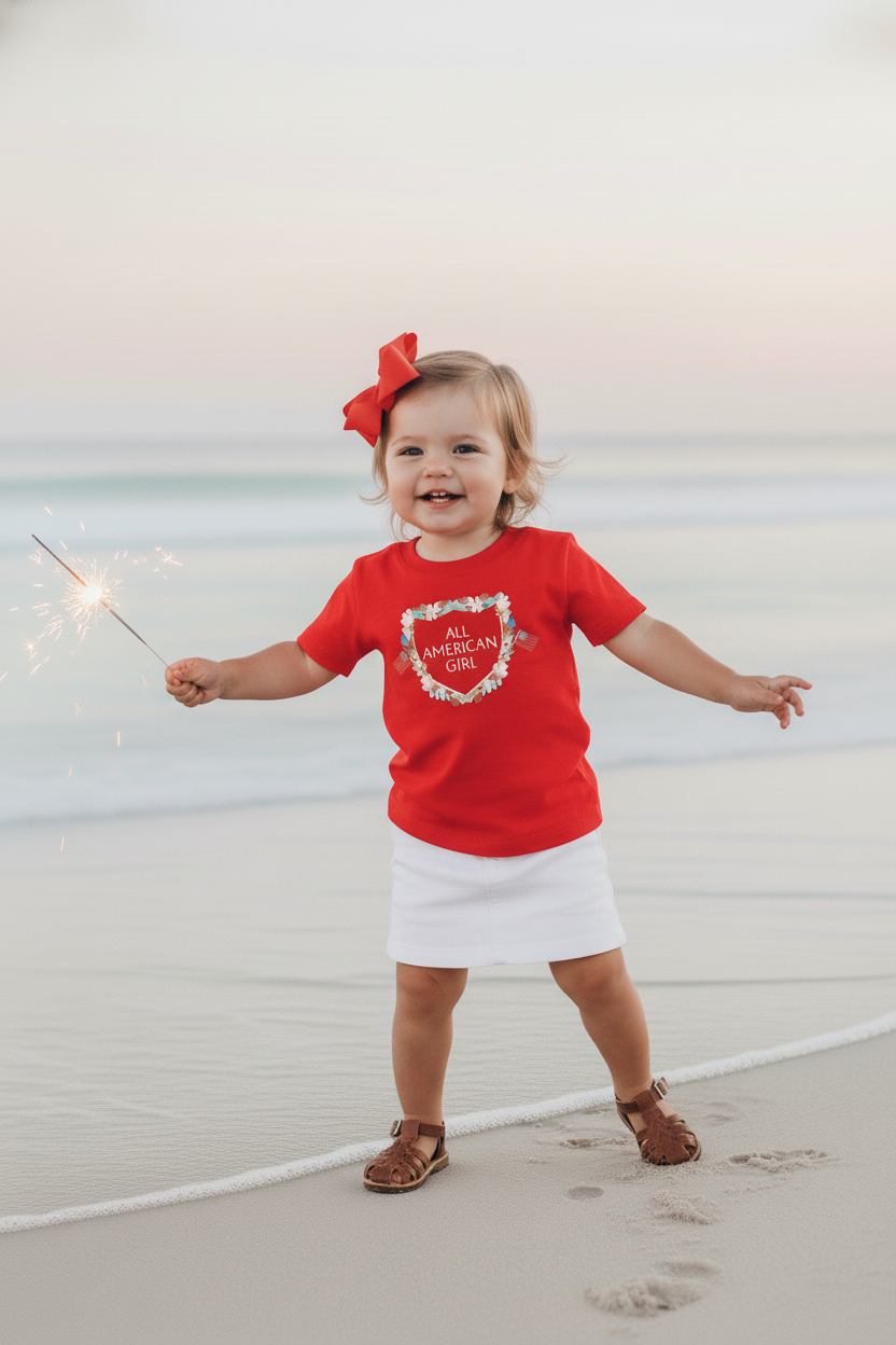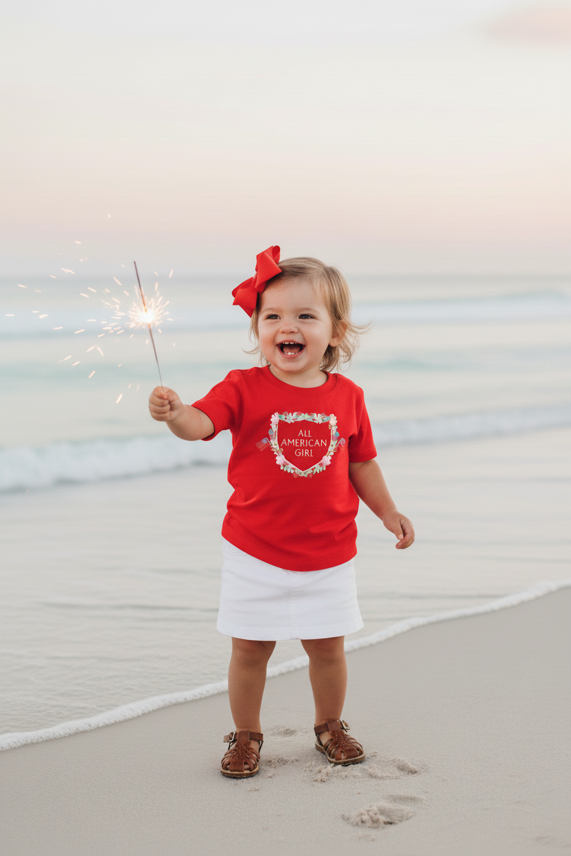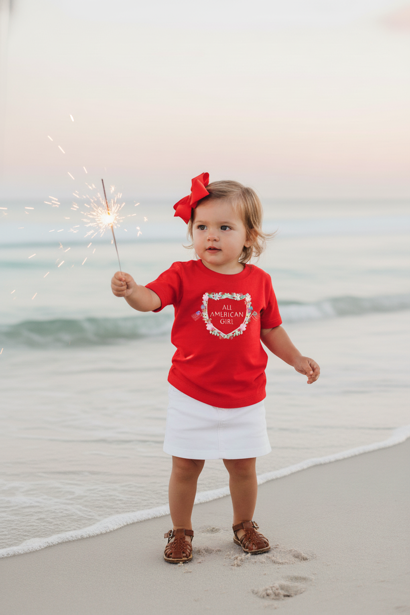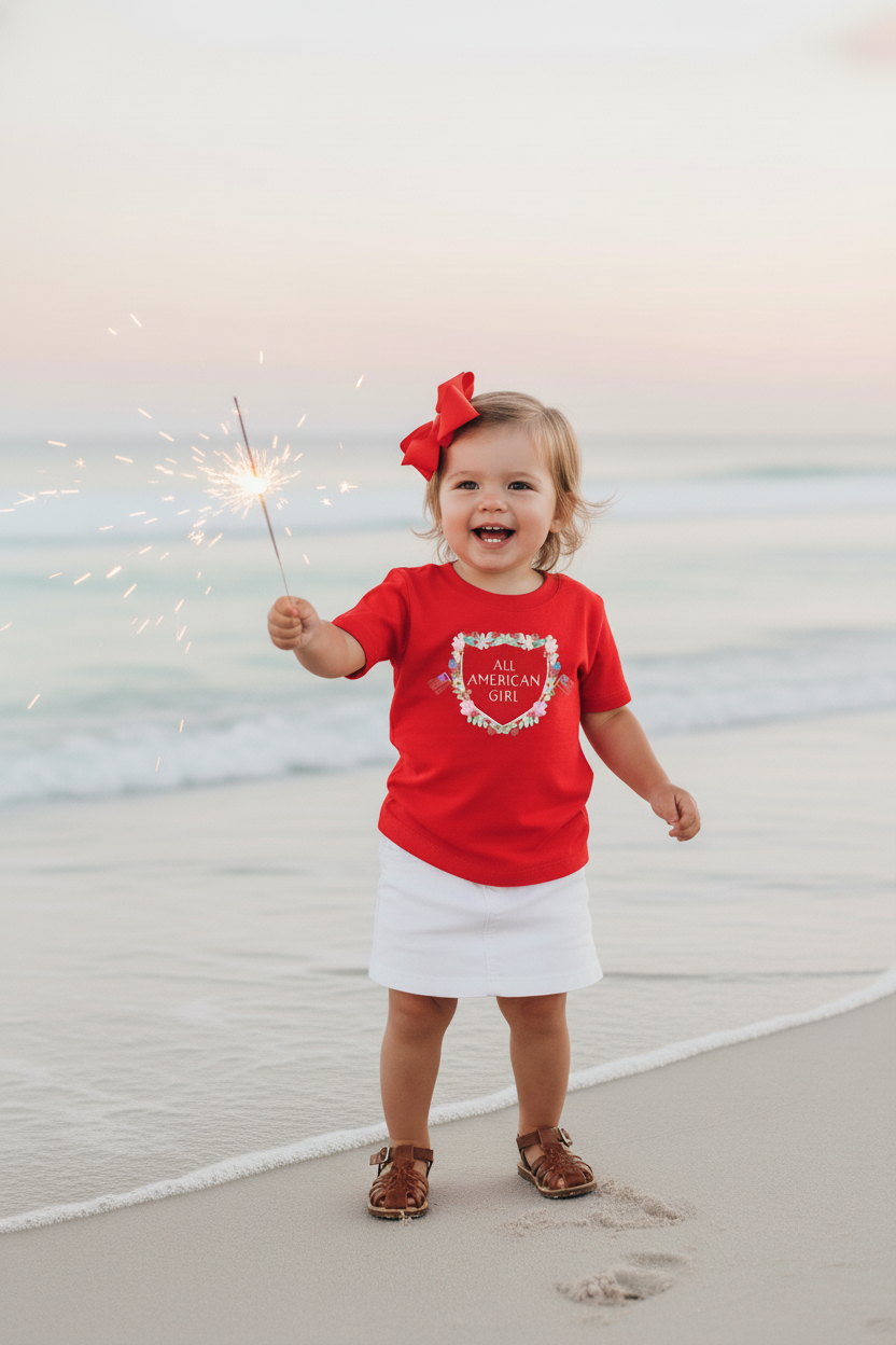 Celebrate summer’s sweetest moments with this lightweight, easy-to-wear tee—designed for little ones who love to shine. Crafted from soft, breathable fine-jersey cotton, it keeps your All-American girl comfortable from backyard play to beachside evenings.