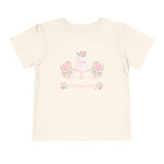 Soft, light, and playfully sweet—this toddler tee brings the charm of a floral birthday tea party to everyday wear. The hand-painted cake, balloons, and tiny blossoms rest gently on breathable Airlume cotton, giving your little one comfort that lasts from morning giggles to afternoon play. Side seams help maintain a tidy shape through every wash, while the tear-away label keeps sensitive skin happy.