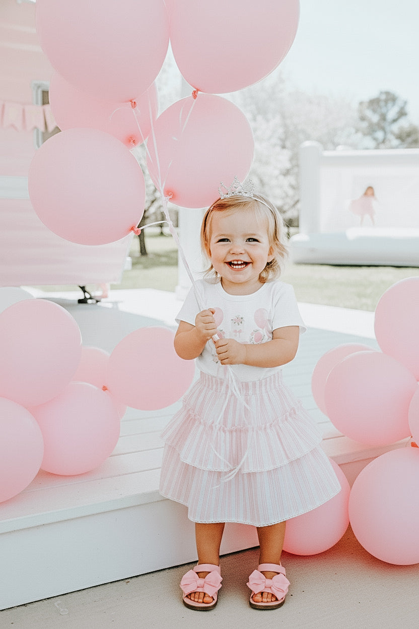 It feels like a cozy afternoon of pink frosting fingers, twirly skirts, and ribboned hair—an effortless choice for photos, parties, family visits, or simply making the birthday girl feel extra special.