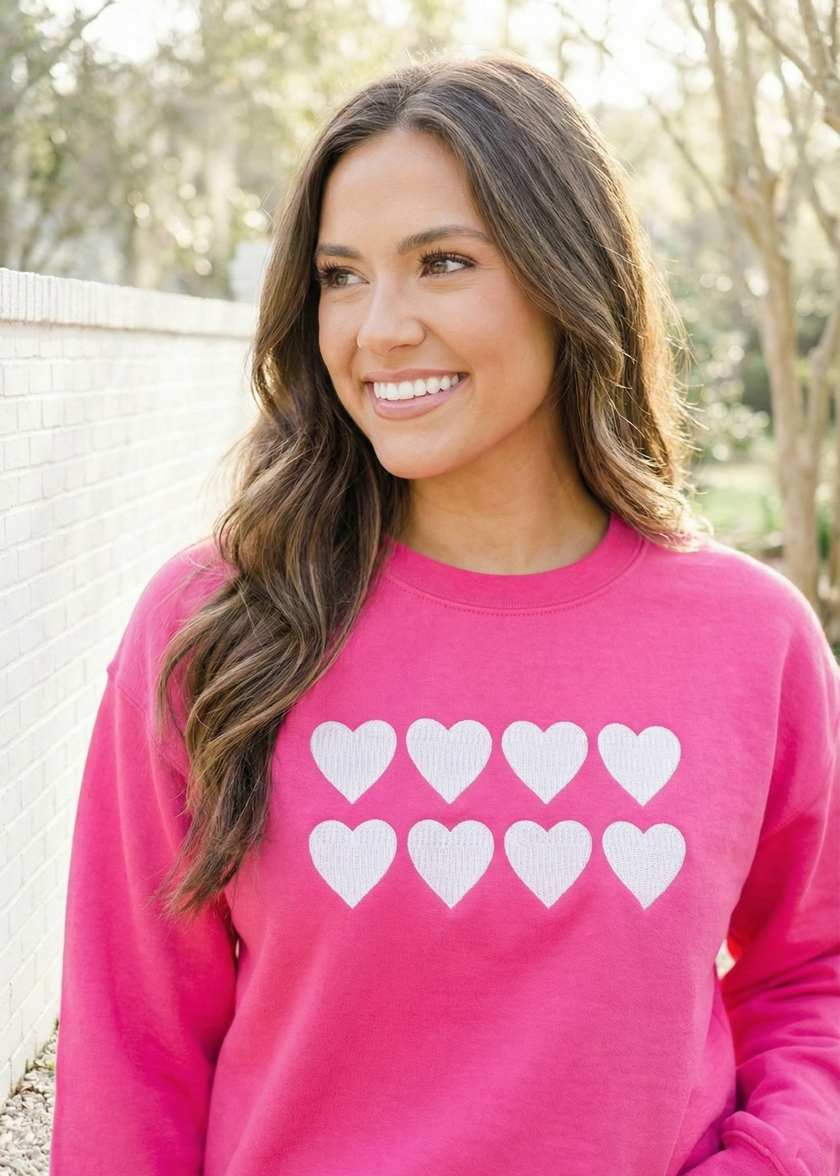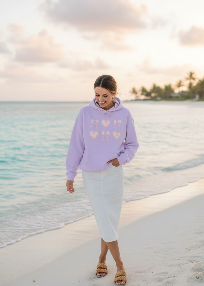 Heart & Bows Hoodie — Cute Pink Heart Pattern Pullover for Valentine’s Day