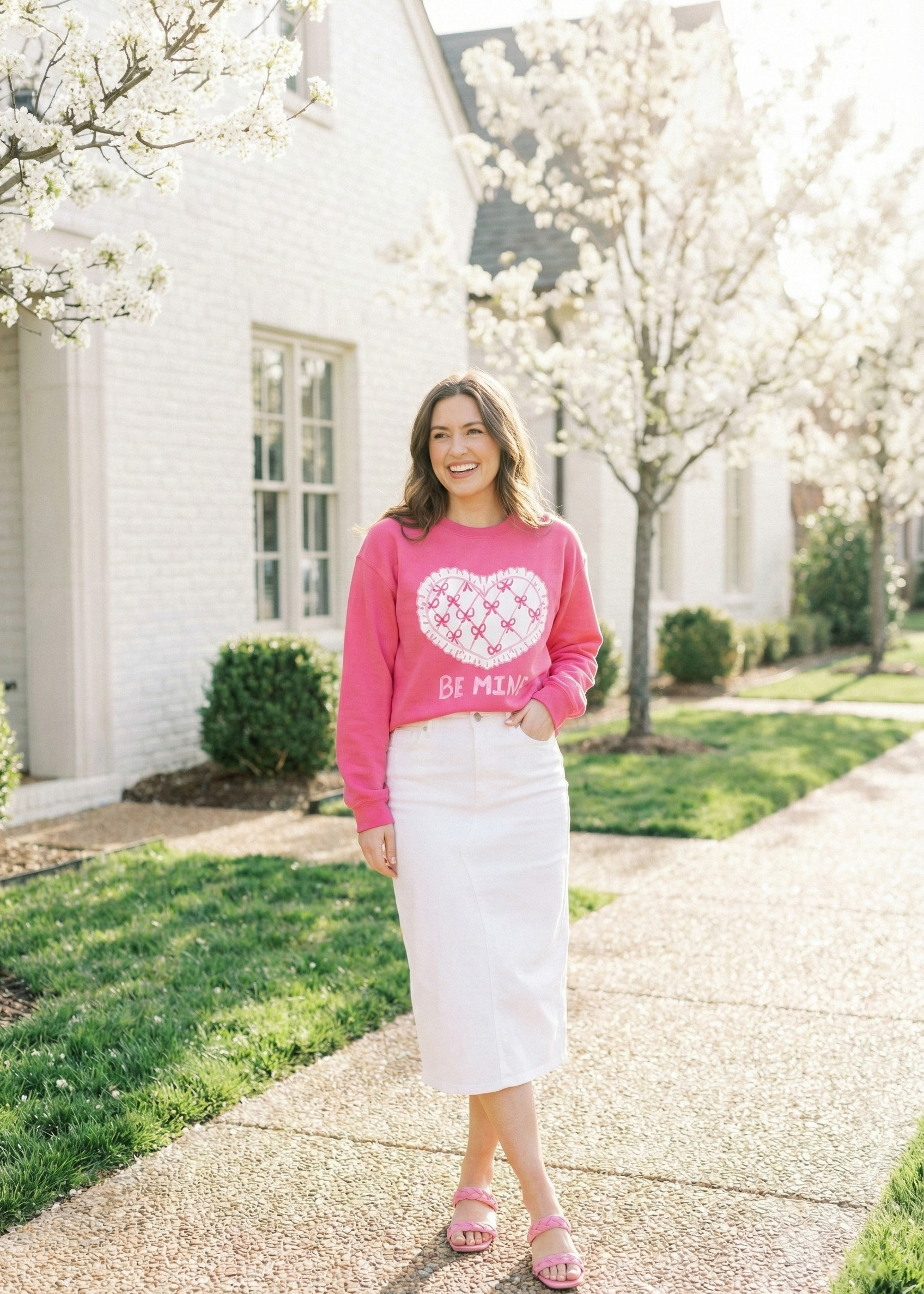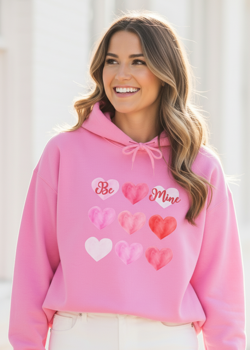 Valentine "Be Mine" Heart Sweatshirt — Cute Pink Lace Candy-Heart Pullover