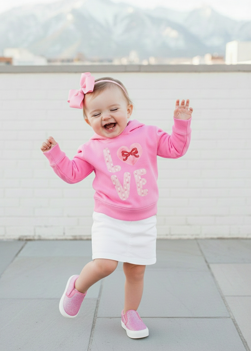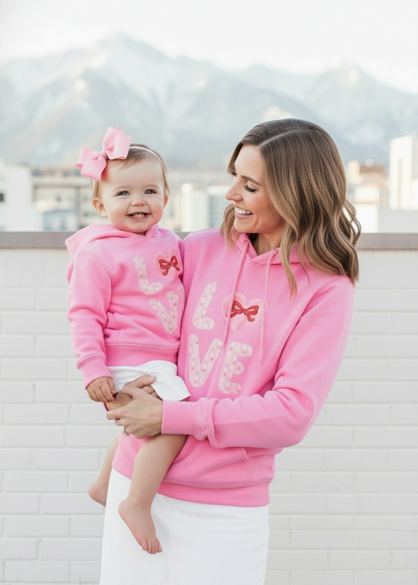 LOVE Mommy & Me Pink Floral Heart Hoodie — Romantic Valentine’s Day Pullover