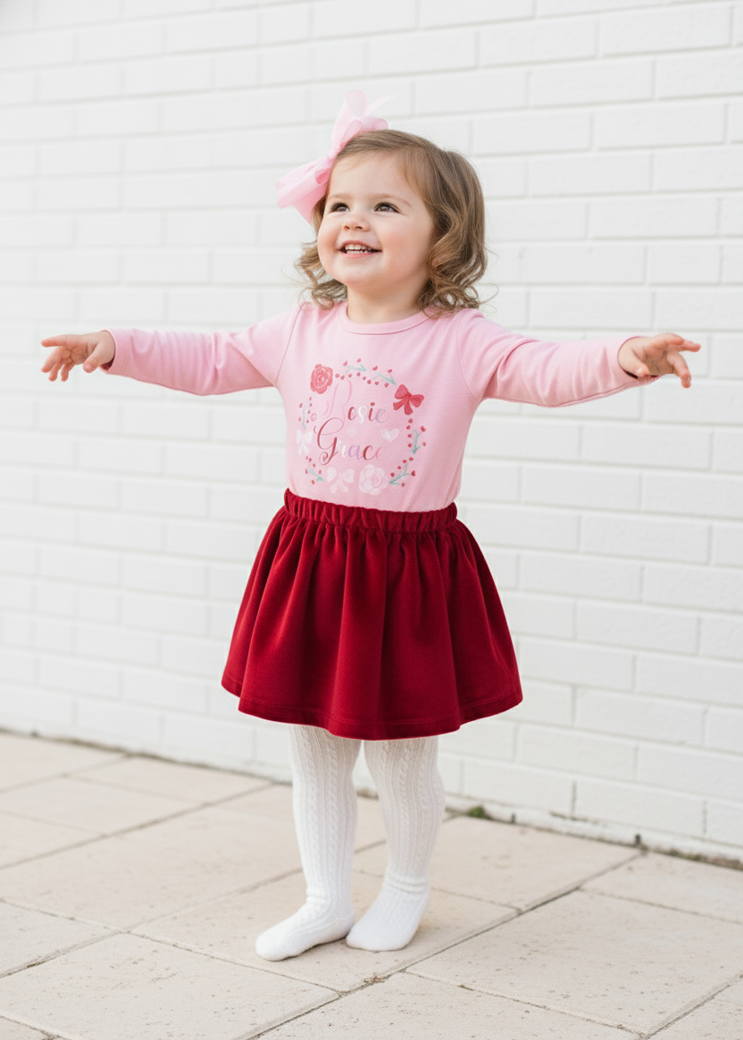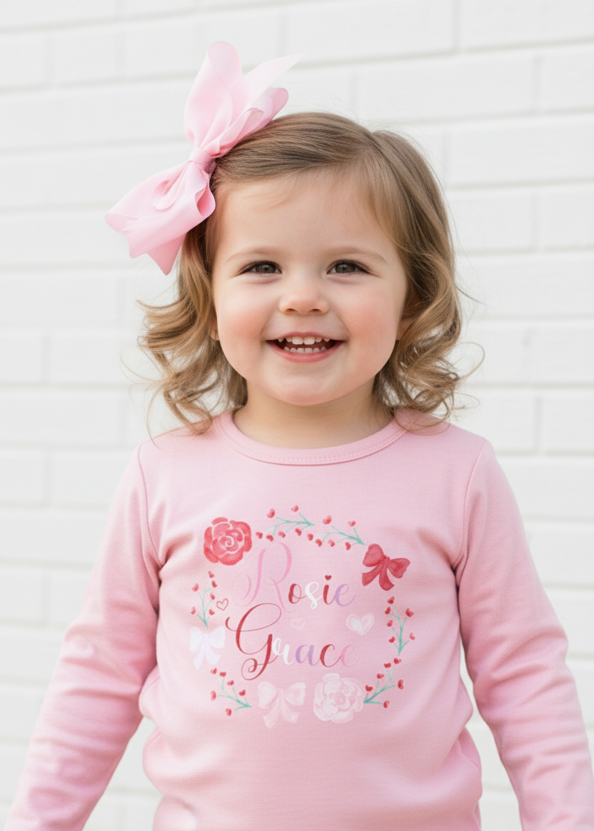 Valentine's Toddler Long Sleeve Tee — Floral Name Wreath