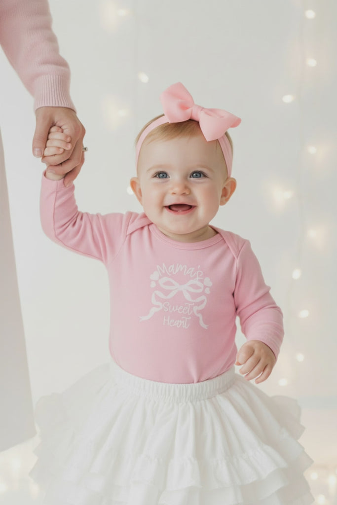 Valentine's Day - "Mama's Sweetheart" Bow & Hearts Long Sleeve Onesie